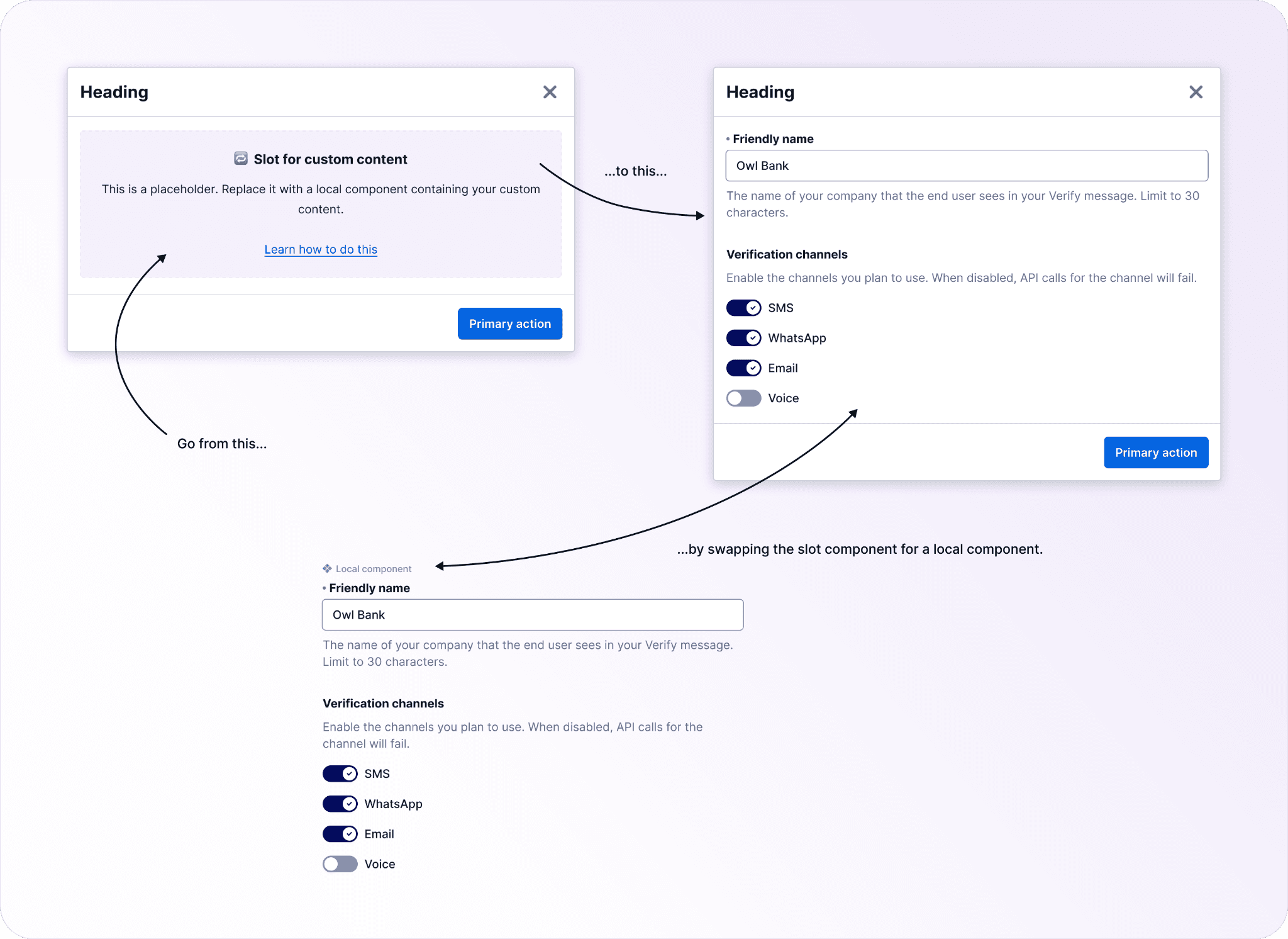 On July 28th, there was a big Figma release that introduced the concept of Slots. Slots are placeholder components that can be nested inside container components. They’re intentionally empty so that you can swap them out for your own custom content. It’s now easier for you to place custom content inside of existing Paste container components (e.g. Card, Modal, Disclosure, etc.) without having to detach them! It’s as easy as swapping out variants.
